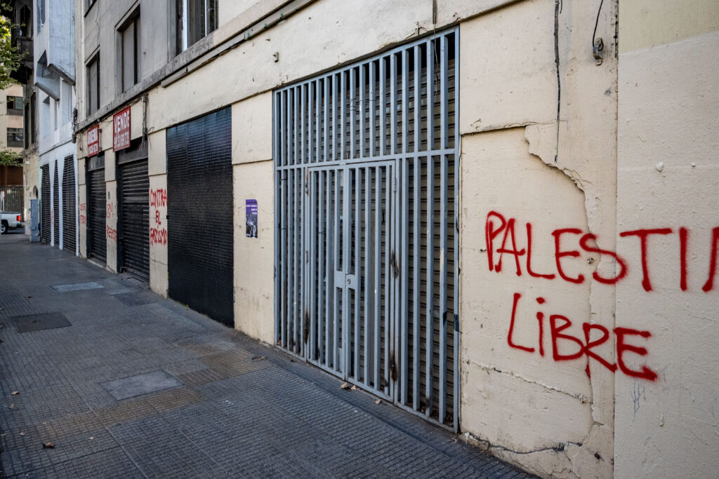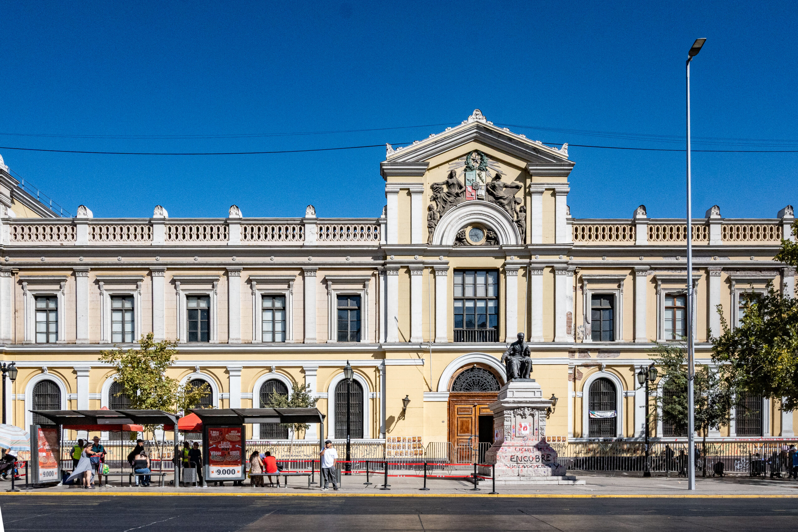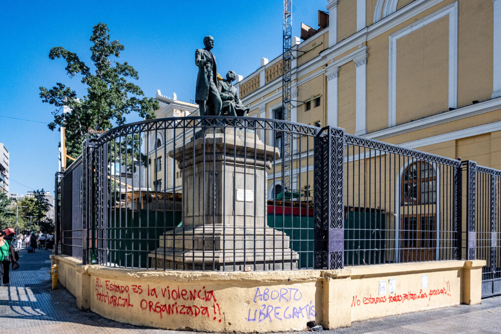 Santiago, marzo 2026.- Tras la marcha en conmemoración del Día Internacional de la Mujer, el Gobierno de Santiago, a través de su programa Recuperación de Fachadas Eje Alameda, inició labores de limpieza en los inmuebles del sector. Actualmente los trabajos presentan un 60% de avance y se espera que esta jornada finalicen los trabajos, de cara al cambio de mando presidencial.